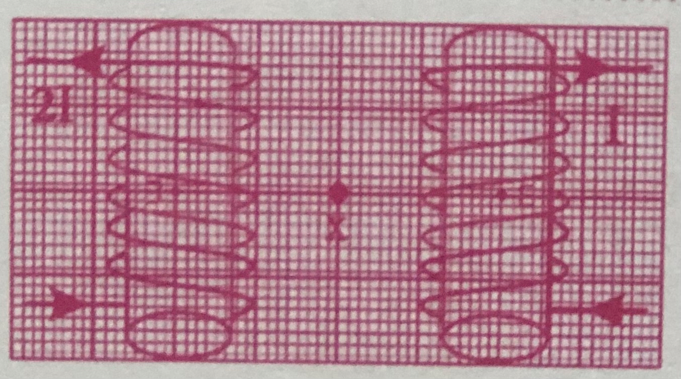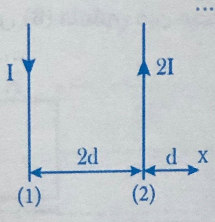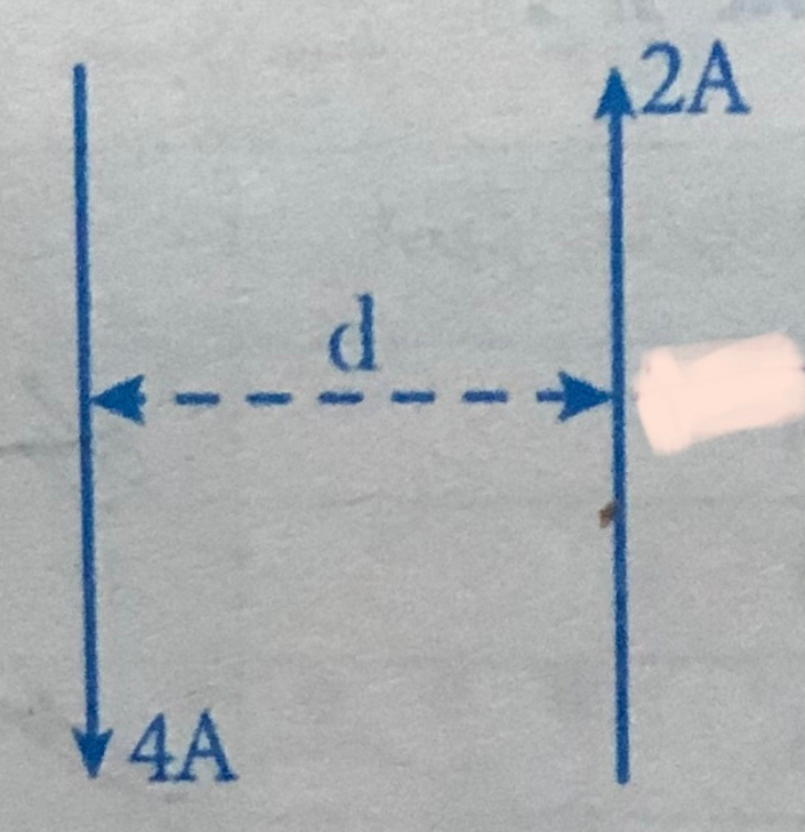 6- 6- سلكان متوازيان المسافة بينهما cm (d) يمر بهما تيار 2A ,4A في اتجاهين متضادين فإذا عُكس اتجاه التيار أحدهما فإن نقطة التعادل تُزاح مسافة……..؟