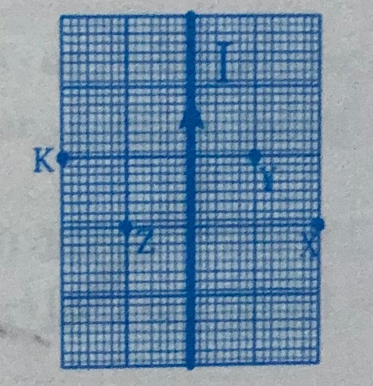 4- الشكل المقابل يمثل سلك مستقيم طويل يمر به تيار كهربي وجميع النقاط الموجودة على الرسم في نفس المستوى فإن النقطة التي تكون كثافة الفيض عندها ضعف وعكس كثافة الفيض عند النقطة X هي ؟