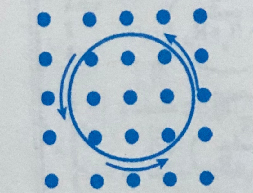 2- الشكل المقابل يوضح ملف دائري موضوع عموديًا على مجال مغناطيسي منتظم فإذا دار الملف عكس عقارب الساعة 90° حول محور عمودي على مستواه فإن الفيض الذي يخترق الملف ؟