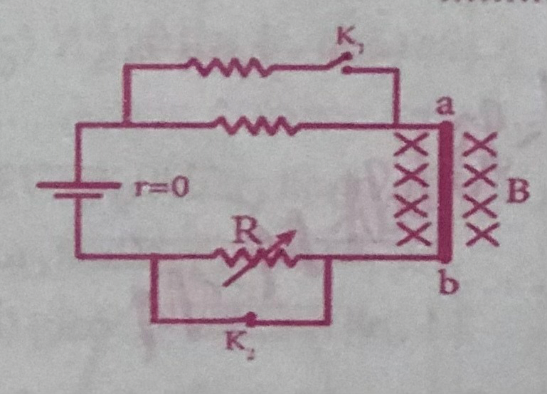 21- في الشكل المقابل ، أي من التغيرات التالية تؤدي لنقص القوة المغناطيسية المؤثرة على السلك ab نتيجة تأثره بالمجال المغناطيسي الخارجي B ؟